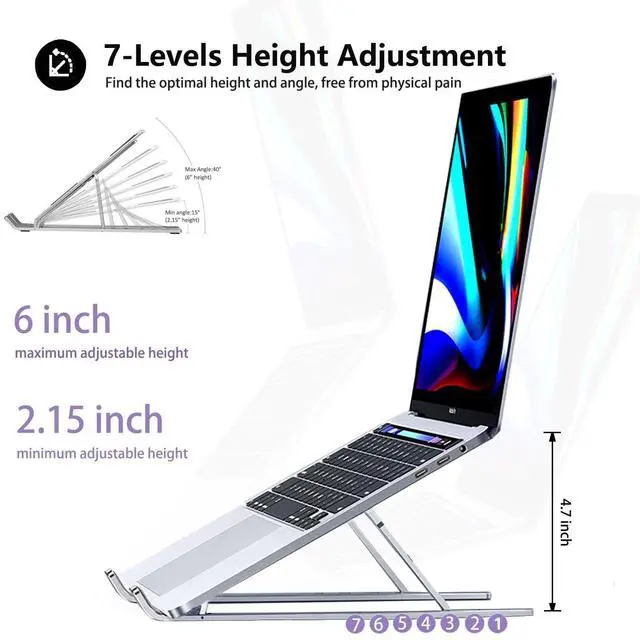 Bring Small But Beautifull Change to Your LifeWhen you have a laptop stand, you'll find that a laptop stand can free up your desk space, provide ergonomic comfort, and prevent your device from overheating. Our laptop stand do exactly that, which offers the best combination of stability, adjustability, and sleek style. Adjustable & ProtectiveIt can position the laptop to work best for your sitting height, helping improve your posture while reducing neck and shoulder pain. Stable & SturdyIt can hold up to 88 lbs of weight, enough sturdy to support your laptop.