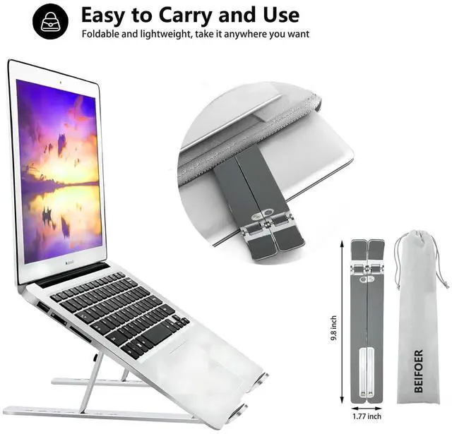 Foldable & PortableYou can fold the laptop stand up to carry around for travel and business trips or store it in your bag. BEIFOER LAPTOP STAND--A FOOLPROOF GIFT FOR YOUR FAMILY AND FRIENDS