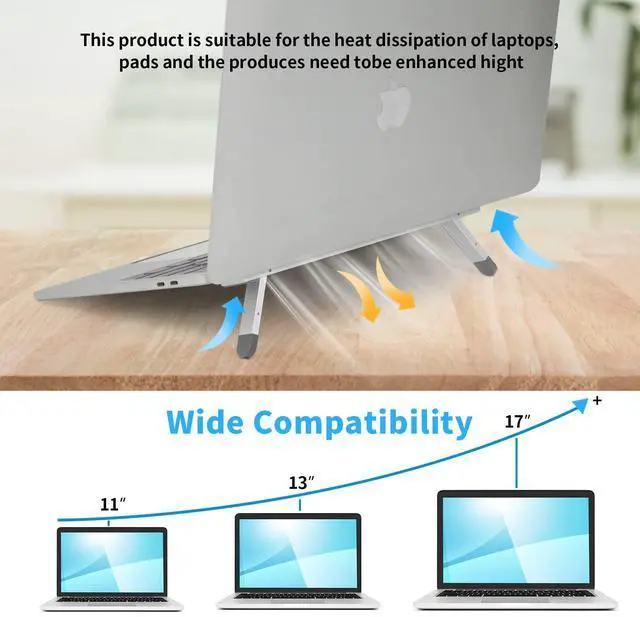 Broad Compatibilityfrom 10 inches to 17 inches and moreThis laptop stand can be used in many occasionsHomeMeeting RoomOfficeClassroomLibraryCoffee ShopCompatible withlaptops, tablets, projectors, menu, music booksmagazines etc.. PORTABLE INVISIBLE COOLING STAND