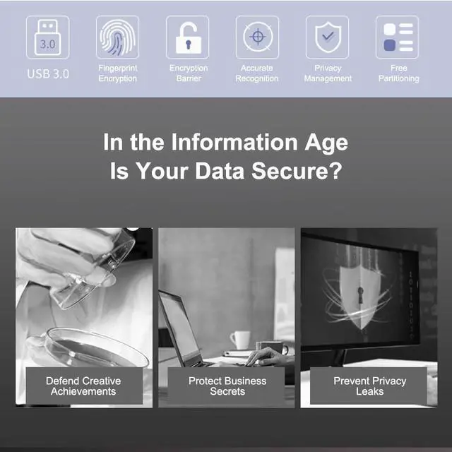 Feature: Automatic drive lock after 10 consecutive failed fingerprint attemptsDimensions: 7.0 cm ( 2.76 in) x 0.9 cm ( 0.35 in) x 2.1 cm ( 0.83 in)Weight: Approximately 10g ( 0.35 oz)Package