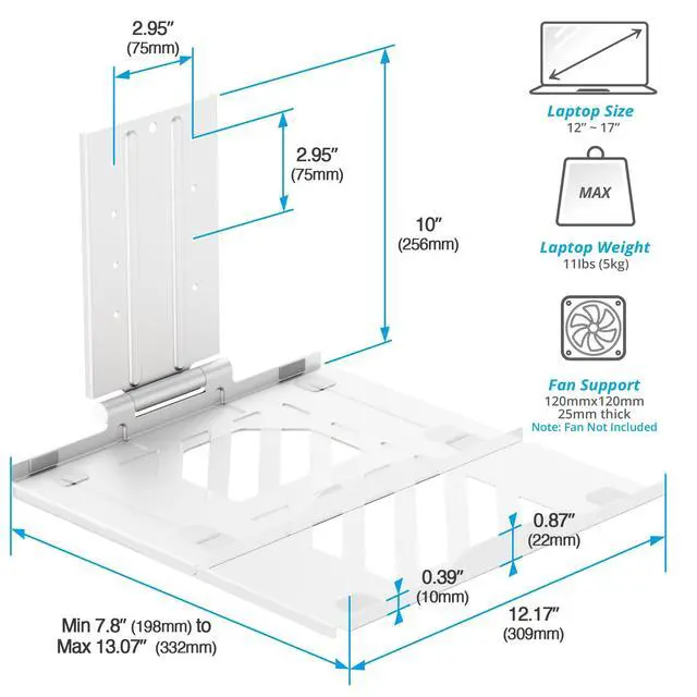 • Wide Compatibility: Fits 12 to 17 in laptops; Tool-free extendable tray design accommodates various sizes; supports laptops with lids that open up to 120.