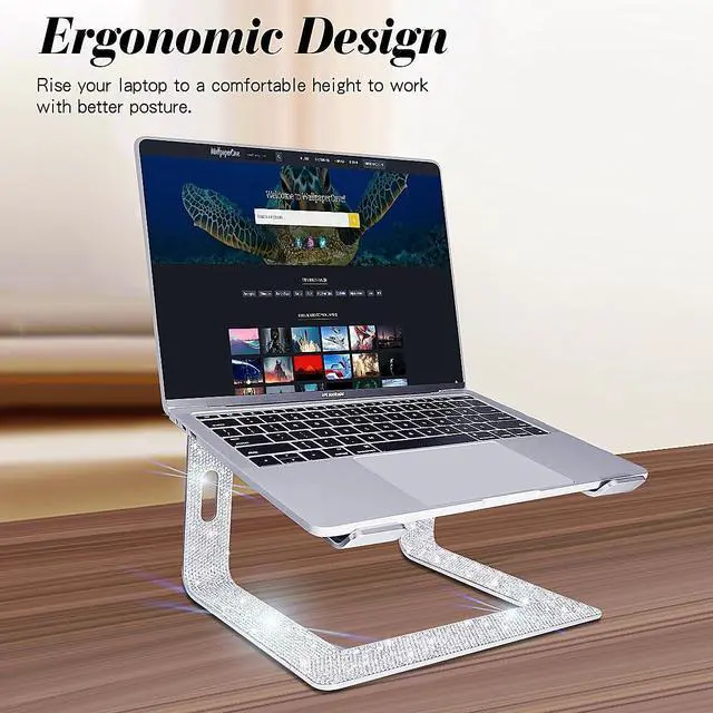 BROAD COMPATIBILITY : This bling aluminum laptop stand is suitable for all laptops, with sizes ranging from 10 inches to 16 inches, Compatible with MacBook, MacBook Air, MacBook Pro, Surface laptops, Dell, Google, HP, Asus, Acer, Chromebook, and Alienware, and many others.