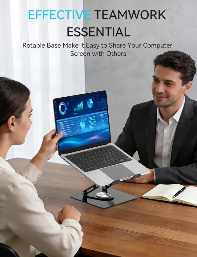 Ease: The SOUNDANCE laptop stand features a 360 rotatable base, making it easy to share your computer screen with others while collaborating on projects.