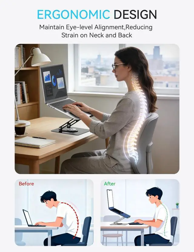• Collaborate with Ease: The SOUNDANCE laptop stand features a 360 rotatable base, making it easy to share your computer screen with others while collaborating on projects.