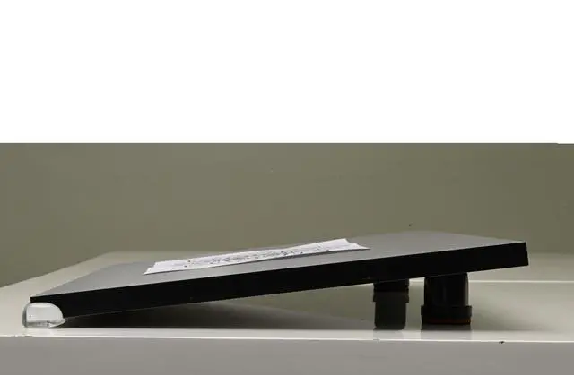 The angle makers move back and forth under the panel until you get the desired angle of a surface. Each angle maker has anti- vibration and anti-slip feet.