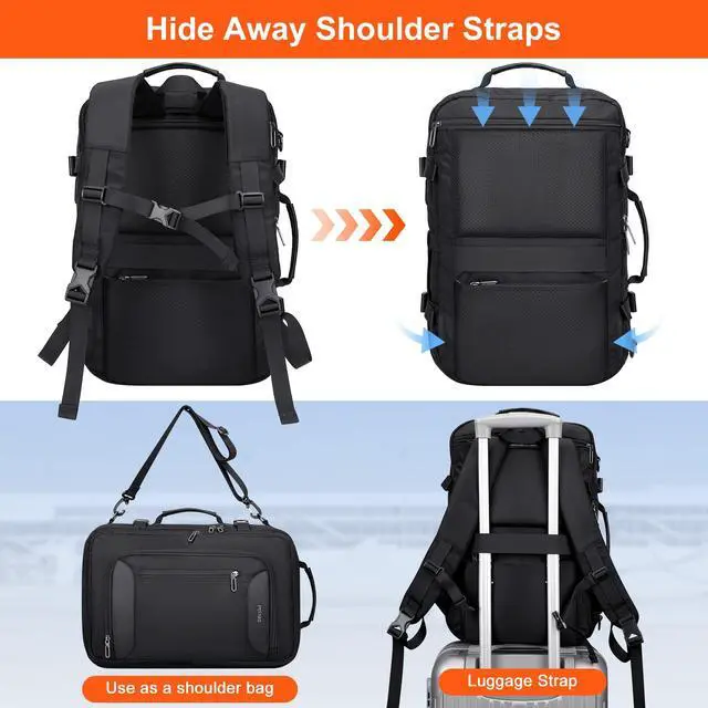 ^^ Varied Carry Ways: This luggage backpack is made with padded shoulder straps that can be hidden away in the back, It also has 1 top handle, so you can easily switch it from a backpack to a duffle bag. Additionally, it comes with a long strap that turns the duffel bag into a shoulder bag. The multiple carrying options of the backpack enhance the convenience of your trip. ^^ Large Capacity and