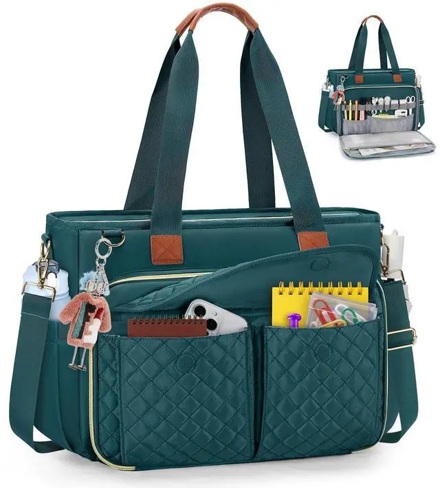 shoulder strap: 30''-55'', Double layers of the front organized compartment aim to store scattered items. The front zip compartment features 11 elastic loops of different lengths, perfectly to store markers, red pens, calculators, mini staplers, rulers, sticky notes, snacks, and morekeeping your core teaching tools handy while helping you care for your class and manage your instruction. ^^ SUITABLE FOR THE MAJORITY OF PEOPLE -Designed for work, travel, and daily errands, this multi-pocket tote bag makes an ideal bag for professionals, career women, nurses, teachers, busy moms, The laptop bag for women also provides multiple ways of carrying, it can serve as a shoulder bag, hand bag and crossbody bag, office bag.