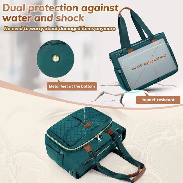 ^^ Effortless Portability: Designed for comfort and durability, this work tote bag for women features cloud-soft cotton-padded handles to ease hands and shoulder strain. The outer sides of the bag are elastic pockets that can hold water cups and umbrellas, and the back luggage strap slides smoothly over suitcase handles, this travel tote bag with such a convenient design is the perfect companion for flights, business trips, and daily commutes. ^^ LONG LASTING MATERIALS - Made of durable water & scratch resistant polyester fabric, metal feet on the bottom to keep it from getting scuffed, premium hardware, smooth zippers and reinforced stitching at each stress point ensures the laptop briefcase durability for long-term performance. High-quality work bags for women is dedicated to providing a comfortable and reliable user experience.