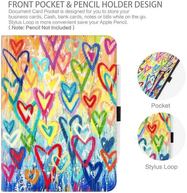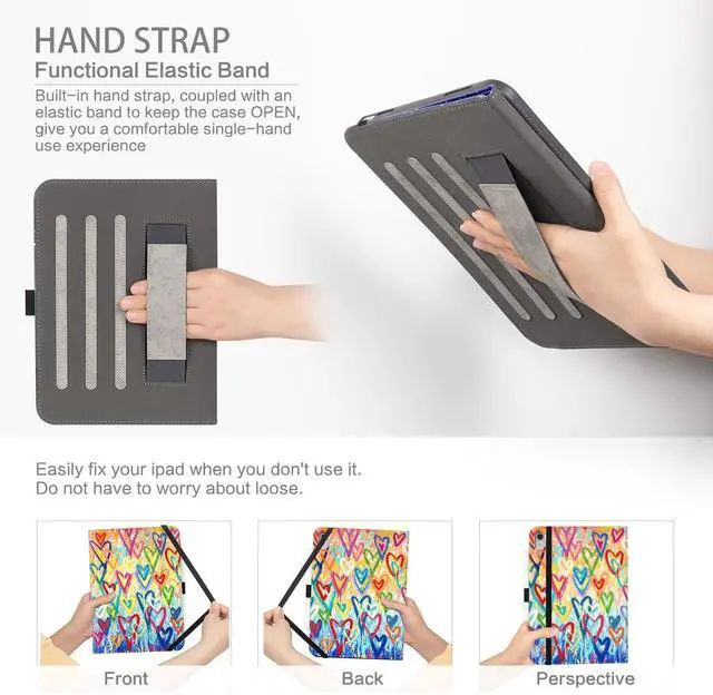Number: A3354 / A3355 / A3356)Premium MaterialCase for iPad 10th Generation is Made of reinforced external PU leather dual layer construction and soft internal microfiber lining to give you 360 full protectionSmart Auto Sleep/ WakeCase for iPad 10th Gen instantly wakes up tablet when opened, and makes it go to sleep once closed (extend battery life). Upgraded Anti-slip StripesWith three anti-slip stripes, you can adjust it to multiple stable angles, holding up great for viewing, video watching and reading at home, or presenting at your meeting. Hand StrapBuilt-in hand strap, coupled with an elastic band to keep the case OPEN, give you a comfortable single-hand use experienceExternal Elastic BandWhen you don't use it, strap help you more firmer to fix your tablet. Do not have to worry about loss and loose. Front Document PocketDocument Pocket is designed for you to store your business cards, Cash, bank cards, notes or bills while on the go. Pencil HolderStylus Loop is more convenient save your Pencil.