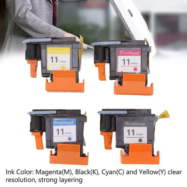 Ink Color: The package includes four printheads, with ink color of Magenta (M), Black (K), Cyan (C) and Yellow (Y), with bright and clear color. 4.
