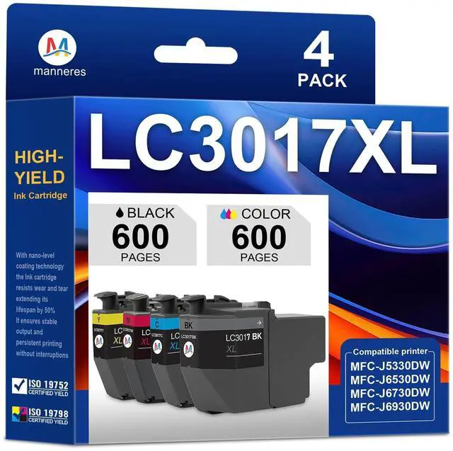 Package contents: 4 Pack-LC3017XL (1Black+1Cyan+1Magenta+1Yellow) Ink Cartridges ^^