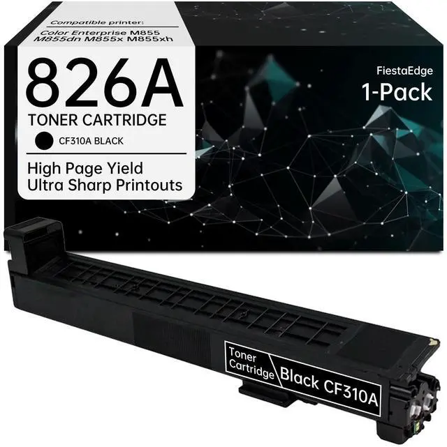 [1-Pack 826A Toner Cartridge Includes] - Replacement for HP 826A CF310A black toner cartridge ^^ [826A Toner Cartridge Page Yield] - Approximately 29, 000 pages per black for CF310A toner cartridge (Letter/A4, at 5% Coverage) ^^ [826A Printers] - 826A CF310A toner cartridge compatible for HP Color Enterprise M855 M855dn M855x M855xh printer ^^ [Good Compatibility] - each 826A CF310A toner cartridge has passed the quality and function test before leaving the factory, ensuring the quality of toner cartridge replacement parts ^^ FiestaEdge 826A CF310A toner cartridge whether you print documents, presentations or graphics, you'll get consistent and reliable printing effect, just like it will not damage the printer