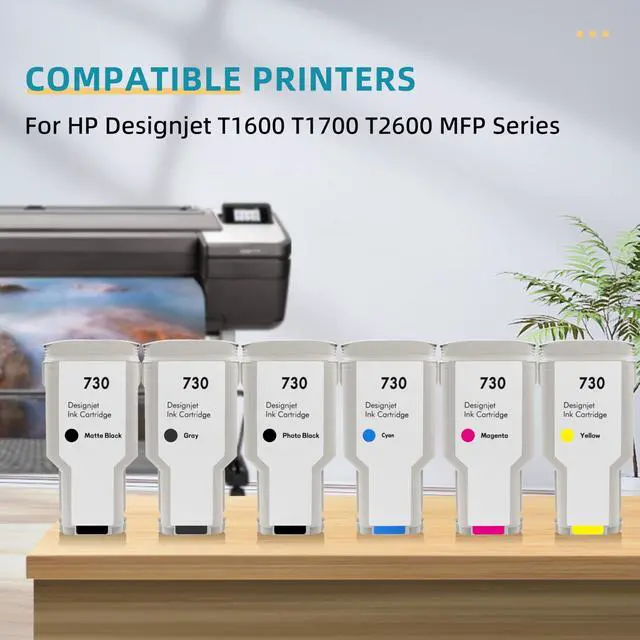 Reliable Quality: Using the latest smart chips and refined ink, our ink cartridges provide a smooth user experience, at a lower cost, and get excellent printing quality. ^^ Our compatible HP 730 ink cartridges come from ISO 9001/14001, CE and other certified factories. We ensure printing results and strict management to ensure stable quality.