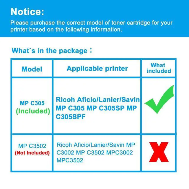 Compatible Printers: Replacement for Ricoh Aficio MP C305 MP C305SP MP C305SPF Lanier MP C305 MP C305SP MP C305SPF Savin MP C305 MP C305SP MP C305SPF ^^