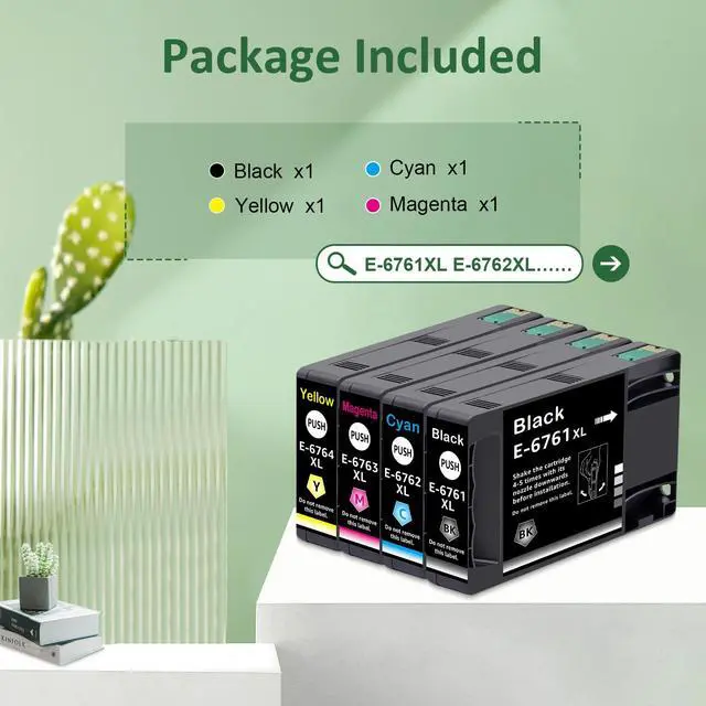Remanufactured T676 Ink Cartridge Includes1 x T676120 Black Ink cartridge, 1 x T676220 Cyan Ink cartridge, 1 x T676320 Magenta Ink cartridge, 1 x T676420 Yellow Ink cartridge. ^^ Compatible for Printer ModelRemanufactured T676 Ink Cartridges for WP-4010, WP-4020, WP-4023, WP-4090, WP-4520, WP-4530, WP-4533, WP-4540, WP-4590 Printers. ^^ Remanufactured T676 Approx. Page YieldThese remanufactured T676 cartridge replacements for 676 each have up to 1, 200 pages and offer superior print performance and quality. ^^ Superior CompatibilityEach remanufactured T676 ink cartridge undergoes quality and functional tests before leaving the factory, ensuring the printing quality of the ink cartridge.