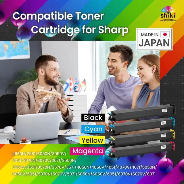 Vivid Output: Developed in Japan to bring sharp, pristine prints in all colors (yellow, cyan, magenta, black). SHIKI toner unit ensures rich color depth in MX2630N, 2651, 3050N, 3051, 3070N and other Sharp MX series machines. ^^