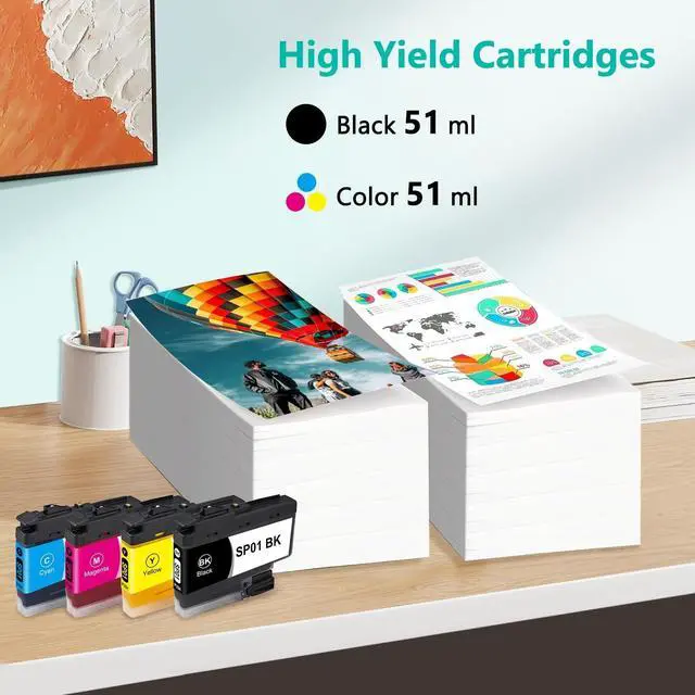 For brother SP01 ink cartridges CompatibleSP01 SP-1 sublimation ink Cartridges. ^^ Compatible PrinterCompatible with Brother SP01 SP-1 Printers. ^^ Cartridge Capacity55ML Per Black ink cartridge, 55ML per Color ink cartridge ^^ For brother sp1 sublimation printer ink cartridgesEach SP01 Ink Cartridge undergoes a strict quality testing procedure to ensure quality and compatibility with your printer. ^^ Easy to DIYUse our SP01 Sublimation ink for your DIY clothes at home, Make readymade clothes all yours