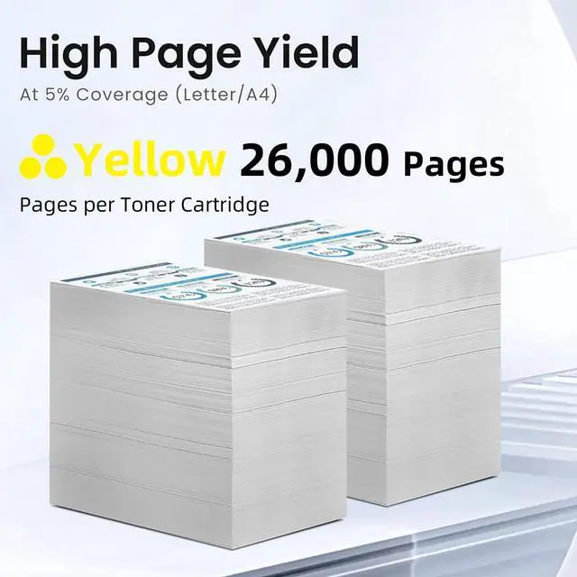 New compatible Black Toner Cartridge with new chip. Page Yield up to Black-52, 000 Pages Cyan/Magenta/Yellow-26, 000 Pages@ 5% coverage ^^