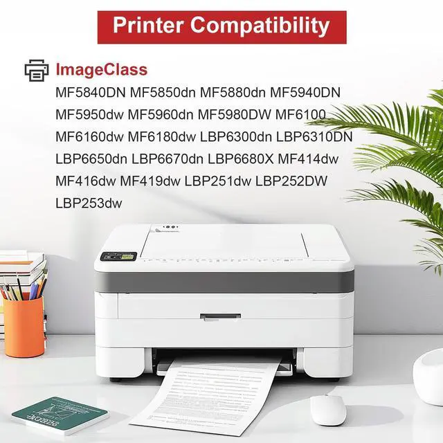 Printer Compatibility: Compatible for Canon imageCLASS MF5840DN MF5850dn MF5880dn MF5940DN MF5950dw MF5960dn MF5980DW MF6100 MF6160dw MF6180dw LBP6300dn LBP6310DN LBP6650dn LBP6670dn LBP6680X MF414dw MF416dw MF419dw LBP251dw LBP252DW LBP253dw Printers ^^