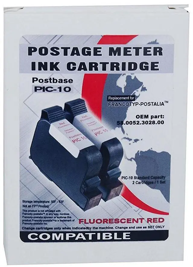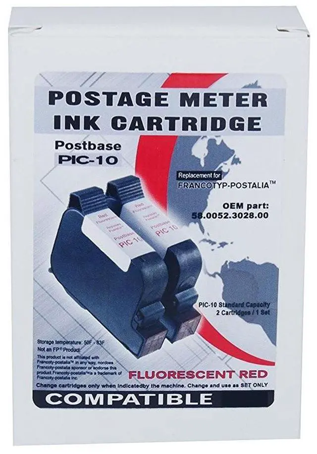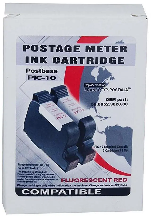 Compatible Standard Capacity Ink Cartridge Set for PostBase Mailing System Provides up to 4, 000 impressions, depending on applications, and usage Compatible with PostBase Models, 20, 30, 45, 65 & 85 Mailing Machines. DOES NOT WORK IN POSTBASE MINI OR MYMAIL. OEM part # 643956933307 Plus