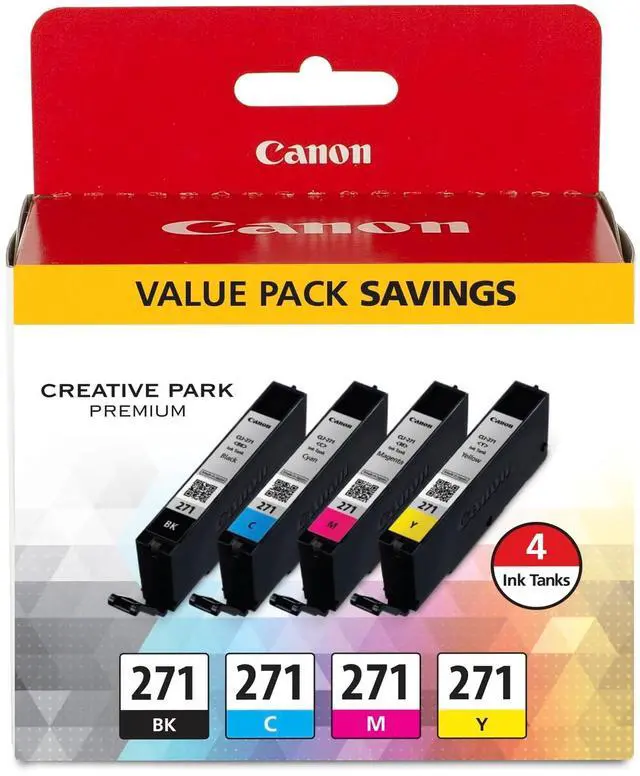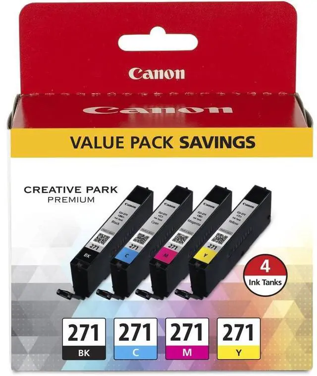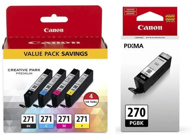 Genuine Canon PGI-270 Pigment Black Ink Tank + Canon CLI-271 CMYK Ink Tank 4-Pack