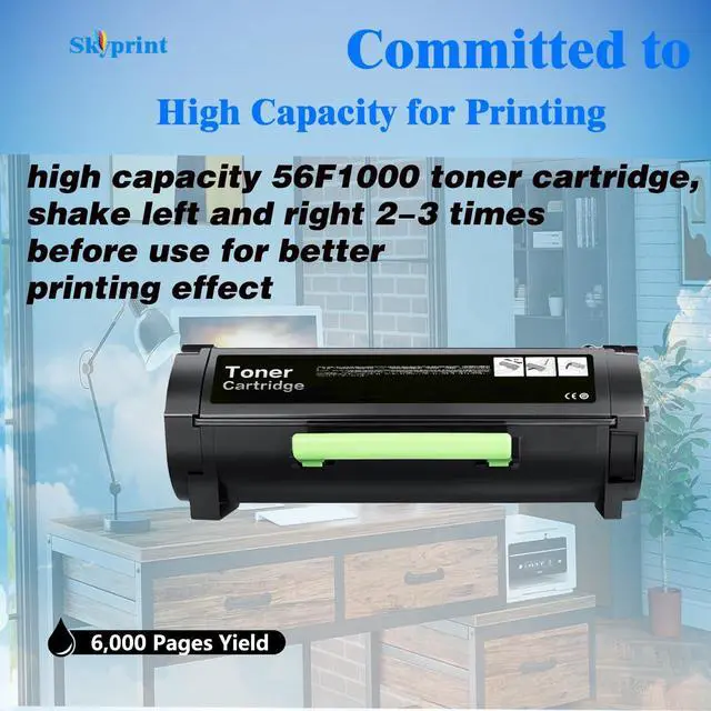 SkyPrint 56F1000 toner cartridges come with intelligent chips that automatically recognize and provide printin, Not damaging the machine,Shake the toner cartridge horizontally 2-3 times before use to evenly distribute the toner