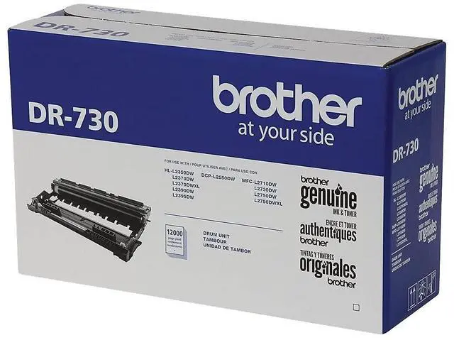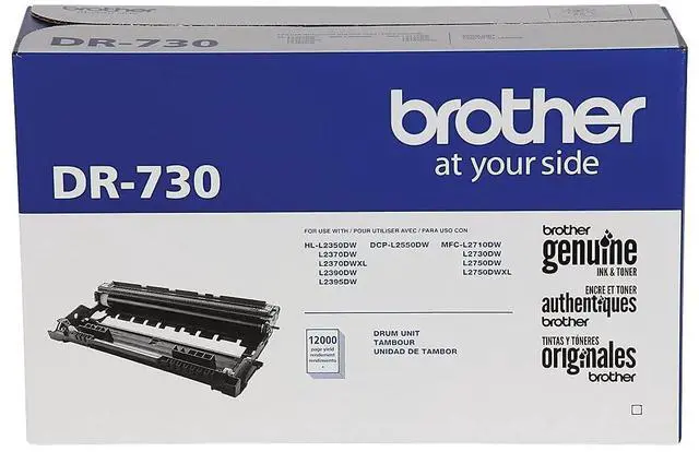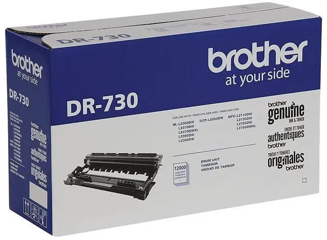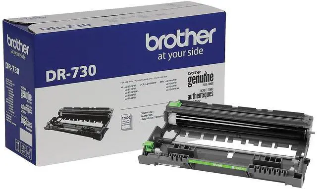 The Brother genuine DR730 drum unit delivers crisp, professional Mono laser print quality with 12, 000-page yield. Brother genuine drum units deliver superior quality and outstanding reliability. Brother genuine drum units are Intelligently engineered to work seamlessly with your Brother Printer to produce prints that withstand the test of time. Use only Brother genuine drum units for consistent results. Brother offers an environmentally responsible way for customers to dispose of their Brother branded products, including drum units at end of life.