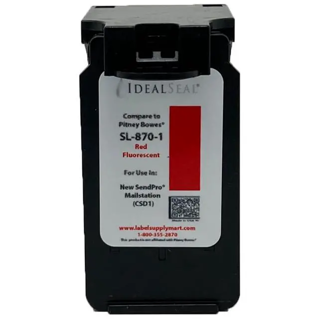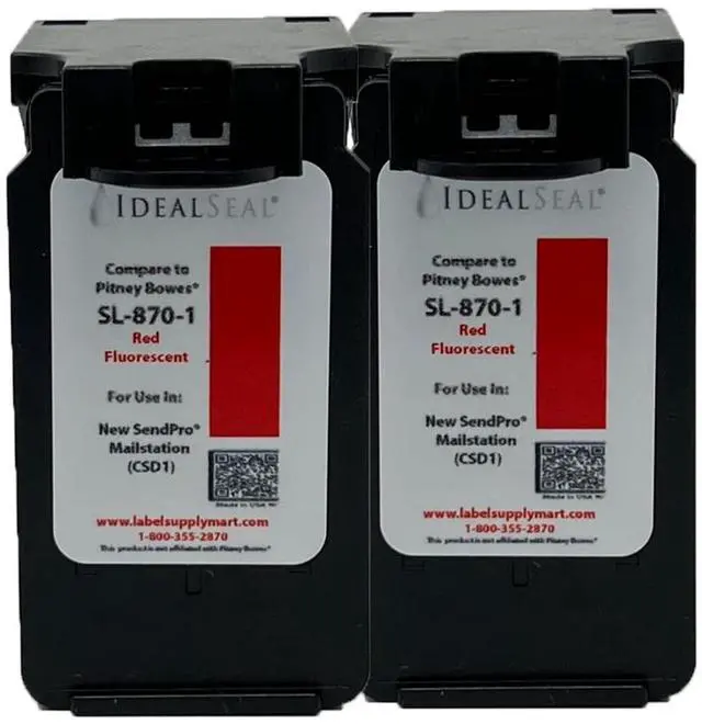 Idealseal (2 Pack) Replacement SL-870-1 Red Ink Cartridge for New SendPro Mailstation (CSD1) ^^ Made in USA ^^ Optimizes the number of envelopes you can print with each cartridge ^^ Each Cartridge Yields up to 400-880 impressions ^^ Still readable if wet.