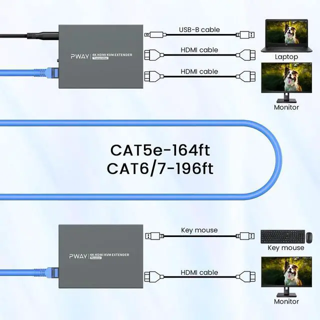 196ft Long-Distance Transmission: Extend your HDMI signal up to 196 feet (60 meters) without compromising quality, ensuring seamless video and control across large spaces