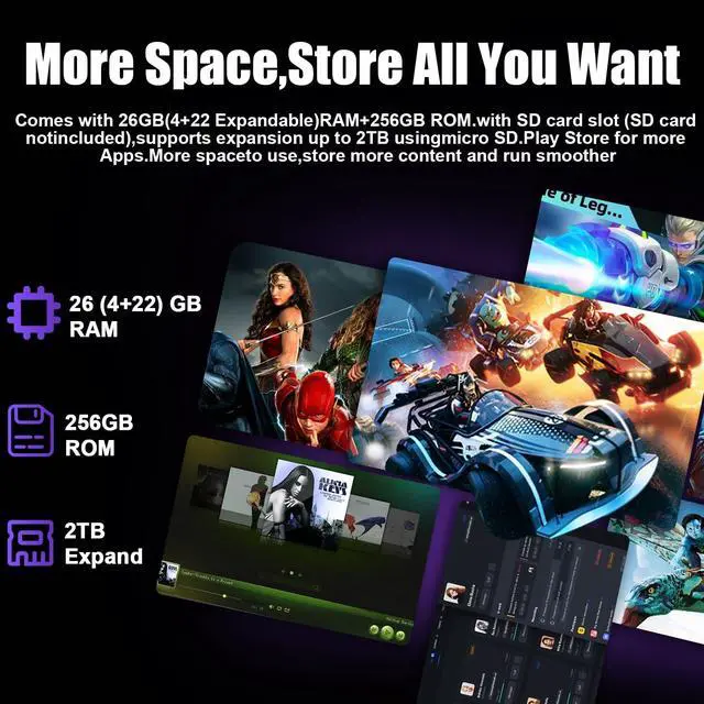 2026 Android 15 Tablet & Fast Octa-Core Processor This latest Android 15 system tablet is a high-performance octa-core tablet. Powered by an integrated A333 octa-core processor, this device delivers efficient and seamless streaming performance. It ensures a smooth and secure user experience for both professional tasks and entertainment purposes, making it an ideal choice for gaming and educational use. Advanced privacy features, including data encryption, user permission controls, and notification management, enhance personal data protection. ^^ 26GB RAM + 256 GB ROM + 2TB Expandable This high-performance Android 15 tablet is equipped with 26 GB of RAM and 256 GB of internal storage, expandable up to 2TB, providing ample capacity for storing over 50, 000 photos or 300 high-definition movies.