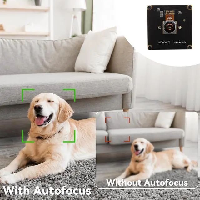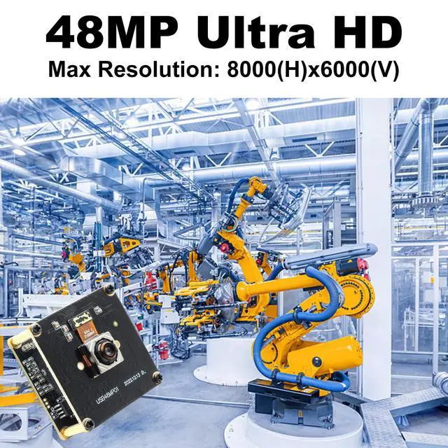 48MP Ultra HD Imaging 80006000 still resolution (48MP) and 4K (38402160) video at 30fps, capturing fine details for industrial inspection and precision projects. ^^ 200ms Fast Autofocus Auto-adjusts focus in 0.2 seconds for millimeter-level precision, ideal for dynamic scenes (no manual lens adjustment needed). ^^ 70 No Distortion Lens Engineered for Lightburn laser engravers, ensuring distortion-free framing for accurate pattern alignment and machine vision tasks. ^^ Compact Industrial Design 3838mm board size, 0.5 in depth, suitable for embedded systems, surveillance, live streaming, and DIY robotics. ^^ Plug & PlayUVC - compliant.