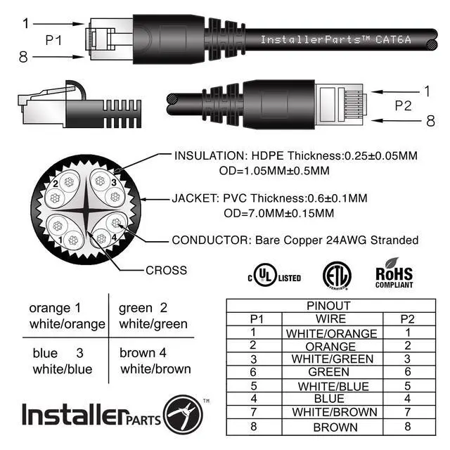 Quality 100% Copper: InstallerParts patch cables are made of 100% bare copper wire and 50 micron gold plated RJ45 plugs. We do not use CCA (copper clad aluminum wire). Each item that we offer has been hand selected by our team and achieves our standards for premium quality. Our factory-partners employ industry environmental standards such as ISO9001, ISO14001 or RoHS.