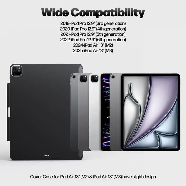 Wide CompatibilityThis iPad 12.9" case is compatible with iPad Pro 12.9 inch 2018-2022 (3rd/4th/5th/6th Generation) and iPad Air 13 inch 2024-2025 (M2/M3).