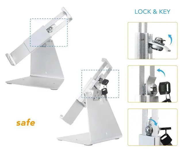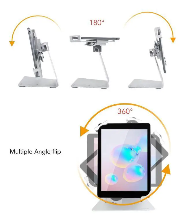 DDSHOW Desktop Anti-Theft Security Kiosk Stand Holder Enclosure for Most 8 to 10.1 Inch,& for 10.2",10.5",10.9",11" iPad with Lock and Key,Flip &360Rotating Horizontal or Vertical Design (Silver)