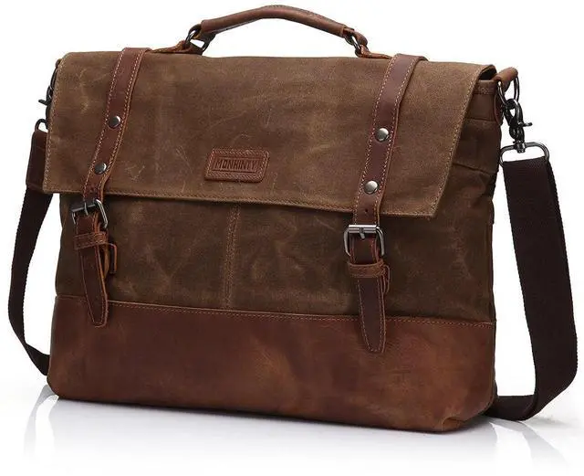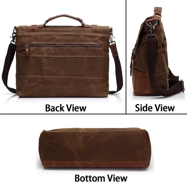FABULOUS AND EASY TO CARRY: Its A briefcase tote hand bag with leather handle on the flap, A messenger bag front closure by 2 leather straps with buckle and magnet button closure, A shoulder bag with a removable adjustable strap, A large canvas business briefcases for men. This everyday messenger bag fits youth and old for working, business, dating, traveling or daily going out. It is good both as a present and for personal use. It is a nice gift for your husband, your son or friends.