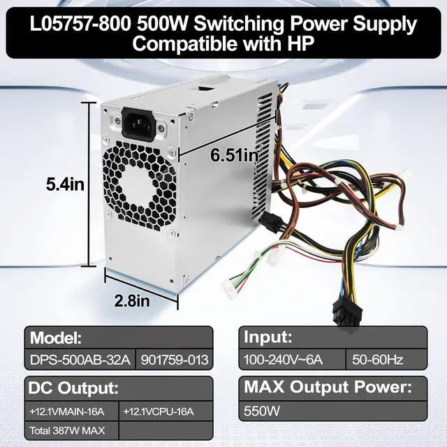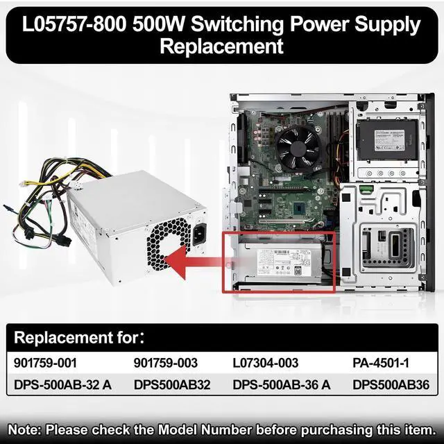 500w L05757-800 Power Supply CompatibilityCompatible with HP EliteDesk Z2 G4 800 880 600 G3 G5 Power Supply Repair ^^ L05757-800 Replacement Power Supply Model NumberDPS-500AB-32 A, DPS500AB32, DPS-500AB-36 A, DPS500AB36 ^^ L05757-800 Replacement Part Number901759-001, 901759-003, L07304-003, PA-4501-1 ^^ Input & Output100-240 V, 50-60 Hz, 6A. 901759-013 power supply
