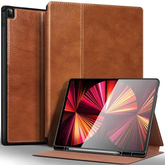 Gexmil Leather Case for iPad Pro 12.9 Inch, 2nd/1st Generation(2017/2015), Premium Leather Cover with Pencil Holder,Cowhide Folio Cover Auto Sleep/Wake,Anti-Fingerprint,Vegetable Tanned Brown