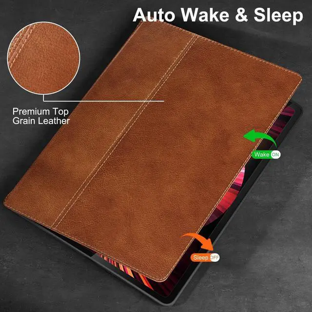 Leather iPad case made of dermal material, the microfiber interior, plus 3 mm thick, high quality soft TPU inner shell, not only ensures that Surface does not get scratched, but also ensures that surface would be safe in the accidents (such as falling, collision and other external injuries). Multi angle support helps the case stand smoothly that allows you to free hands and enjoys the fun of movies. Wherever you use Gexmil genuine leather case, in the office, in a coffee shop, out or at home, even in a kitchen, toilet, etc.