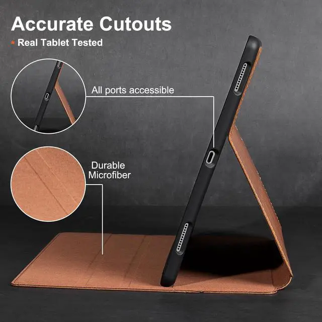 • [MATERIAL&CRAFT] - Exterior is genuine leather protecting camera and tablet body with inner super-fibre lining protecting screen and TPU full package soft inner shell. Full access to all features (Cameras, Speaker, Ports and Buttons); each cutout is tested with relevant tablet before package to make sure working perfectly