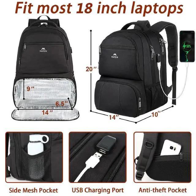Large Capacity & Organized: The Extra large lunch cooler backpack includes 1 main zipper compartment, 1 laptop sleeve compartment for 18 17 15.6 inch computer, 2 small front pockets for small daily accessories, 2 side mesh pockets for water bottle, umbrella. 1 anti-theft pocket on the back for your valuables. Laptop backpack provides independent space for your laptop, mobile phone, lunch box, clothes, wallet, keys, mouse and more travel necessities. Easy to find what you want ^^