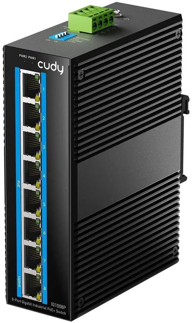 A 8-GbE industrial PoE switch for networking in harsh conditions such as manufacturing, transportation, maritime, oil & gas, and mining.