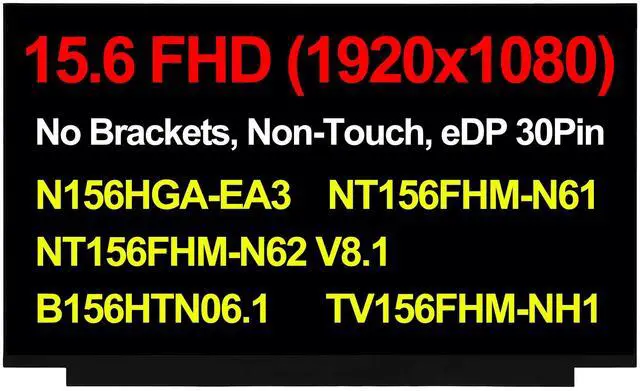 Brand New B156HTN 06.1 NT156FHM-N61 NT156FHM-N62 TV156FHM-NH1 N156HGA-EA3 15.6 inch IPS FHD 1920X1080 LCD LED Screen Display Panel Replacement eDP 30Pin No Tabs (Non