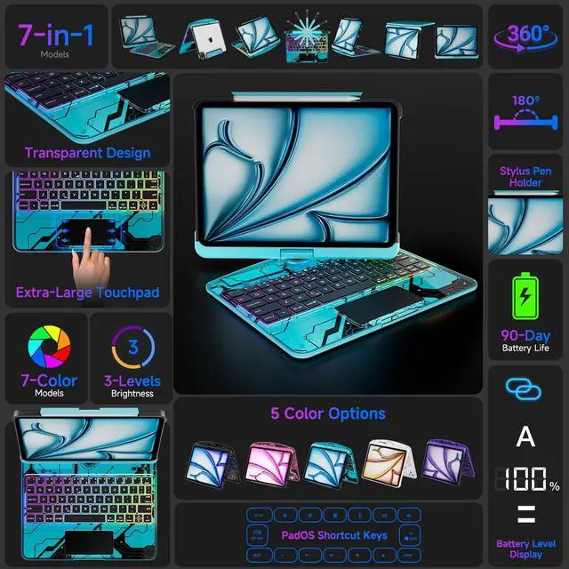 360 Rotatable Stand AND 7 Viewing Angles Effortlessly pivot your iPad for typing, working, sketching, watching videos, or video calls. The sturdy stand provides a secure hold in any position for optimal comfort and productivity.