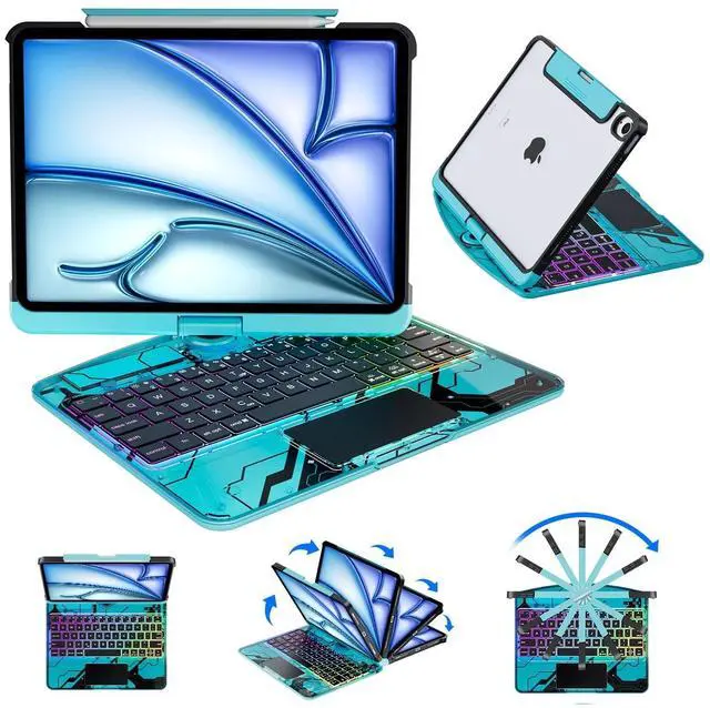 SCKIQUEN iPad Air 13 inch Case Keyboard (M3/M2, 2025/2024) & iPad Pro 12.9 inch Case (6/5/4/3th Gen), iPad Case with Wireless Keyboard & Multi-Touch Trackpad, 360 Rotation & 180 Infinite