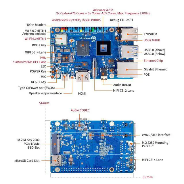 Whether for robotics, smart gateways, industrial control systems, or complex AI inference tasks, it empowers you to bring your projects to life quickly and efficiently. ^^ Wi-Fi 6+Bluetooth 5.4 - Faster, more stable transmission, even in high-interferenceenvironments. Gigabit Ethernet + PoE Support, Simplifies deployment bydelivering both power and dataover a single cable. ^^ Open Software - Supports multiple operating systems including Android, Debian, Ubuntuand OpenHarmony. Comes with complete driver support and development toolchains, enabling rapid model migration, application development, and system customization. ^^ Orange Pi Single Board Computers can builed a computer, a wireless server, Games, music and sounds, HD video, a speaker, Android, Scratch.
