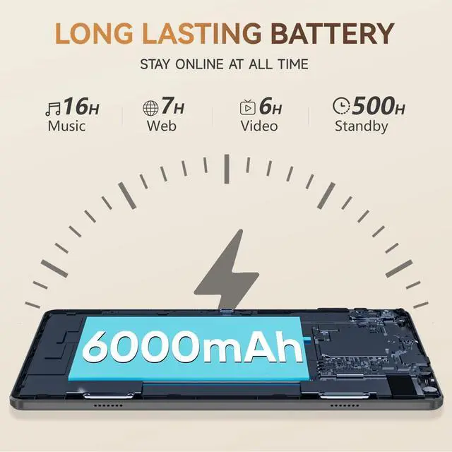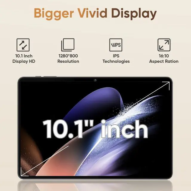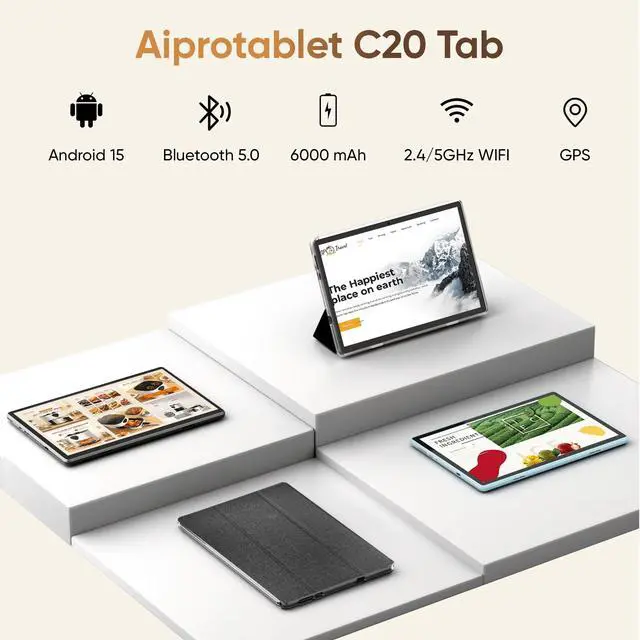 High Performance - The Aiprotablet tablet runs on Android 15 (Not Go) with a 2.0GH z Quad-Core Processor, delivering fast operation and seamless multitasking. Perfect for work, reading, studying, and entertainment ^^ Newest Model - This 10-inch Android tablet features Wi-Fi 5 ( 802.11 ac) and Bluetooth 5.0, supporting both 2.4GH z and 5GHz bands, which greatly improves connectivity stability and internet speed ^^ Massive Storage - The tablet comes with 64GB ROM and expandable up to 1TB via microSD card (not included). It comes preloaded with the Google Play Store, so you can easily download any apps you need ^^ HD Large Screen - The tablet is equipped with a 1280x800 low blue light LCD touch screen, which provides clear visuals and vivid colors, ideal for streaming videos, browsing, and comfortable reading ^^ Durable Battery - With a long-life 6000mAh battery that provides up to 5 days of continuous standby or over 6 hours of use, and fast charging via the Type-C port, you can enjoy your tablet to the fullest