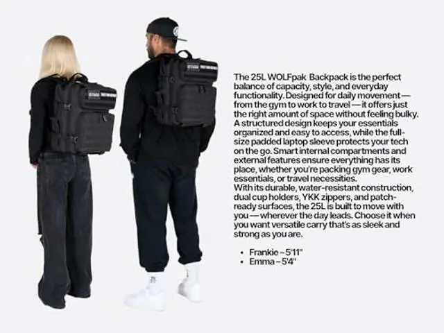 • Spacious 25L - The Perfect Size for Your Everyday Backpack: This WOLFpak 25L backpack is built to handle gym gear, fitness accessories, or everyday carry items. It is a perfect medium-sized bag with a spacious main compartment. Ideal as a hybrid athletic backpack, tactical rucksack, or travel daypack, it offers space and versatility for training, commuting, and outdoor adventures.
