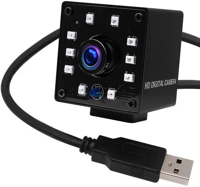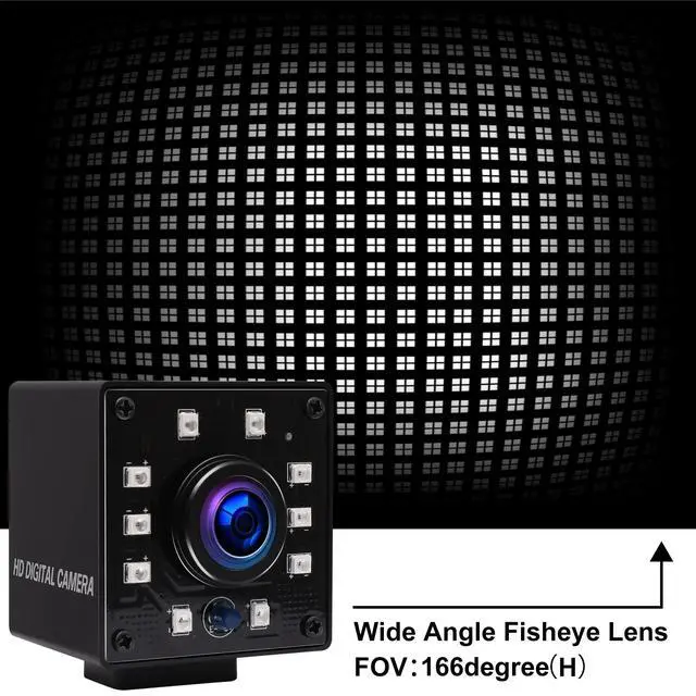 With 10PCS IR LED for whole day and night image view ^^ Equipped with Wide Angle 170degree fisheye lens ^^ Adopt high quality 1/ 2.7" cmos ov2710 image sensor ^^ Can drive 30fps@1080P and 60fps@720p, 120fps@480P ^^ With mini black housing for any place to use ^^ With 3Meters long USB Cables, plug and play ^^ MJPEG/YUY2 Compression Format Optional ^^ High Compatibility with Windows, Linux, Mac, Raspberry Pi, etc. ^^ Can work with OPENCV, Contacam, Yawcam, iSpy, Motion Eye OS, AMCAP, Webcam Viewer, IP Camera Viewer, Zone Minder, V4L2 video for Linux, Camera fi, VLC Player, USB Camera APP, Photo Booth, Facetime, Zoom, Quick Time.