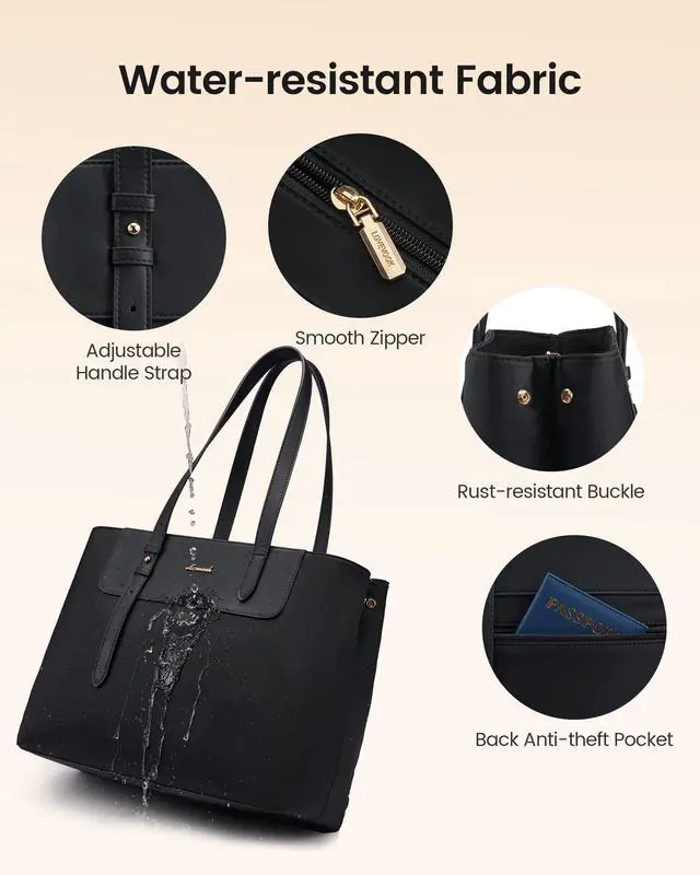 A quick-access back zippered pocket safely stores your phone, passport and cards on the go. Stylish and practical, it seamlessly transitions between work, business, travel and daily use ^^ Versatile All-Occasion Fashion ToteThis LOVEVOOK laptop tote works as a professional business briefcase, work tote bags for women, daily purse and travel bag. With stylish, versatile colors to match any outfit, its perfect for office, school, business, shopping and dates. An elegant gift for birthdays, graduations, Mothers Day, Valentines Day, Christmas and special occasions