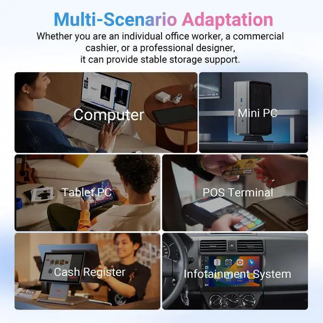 Capacity Options: Offering 128GB, 256GB, and 512GB capacities, it can precisely match storage needs ranging from everyday office work to professional usage.